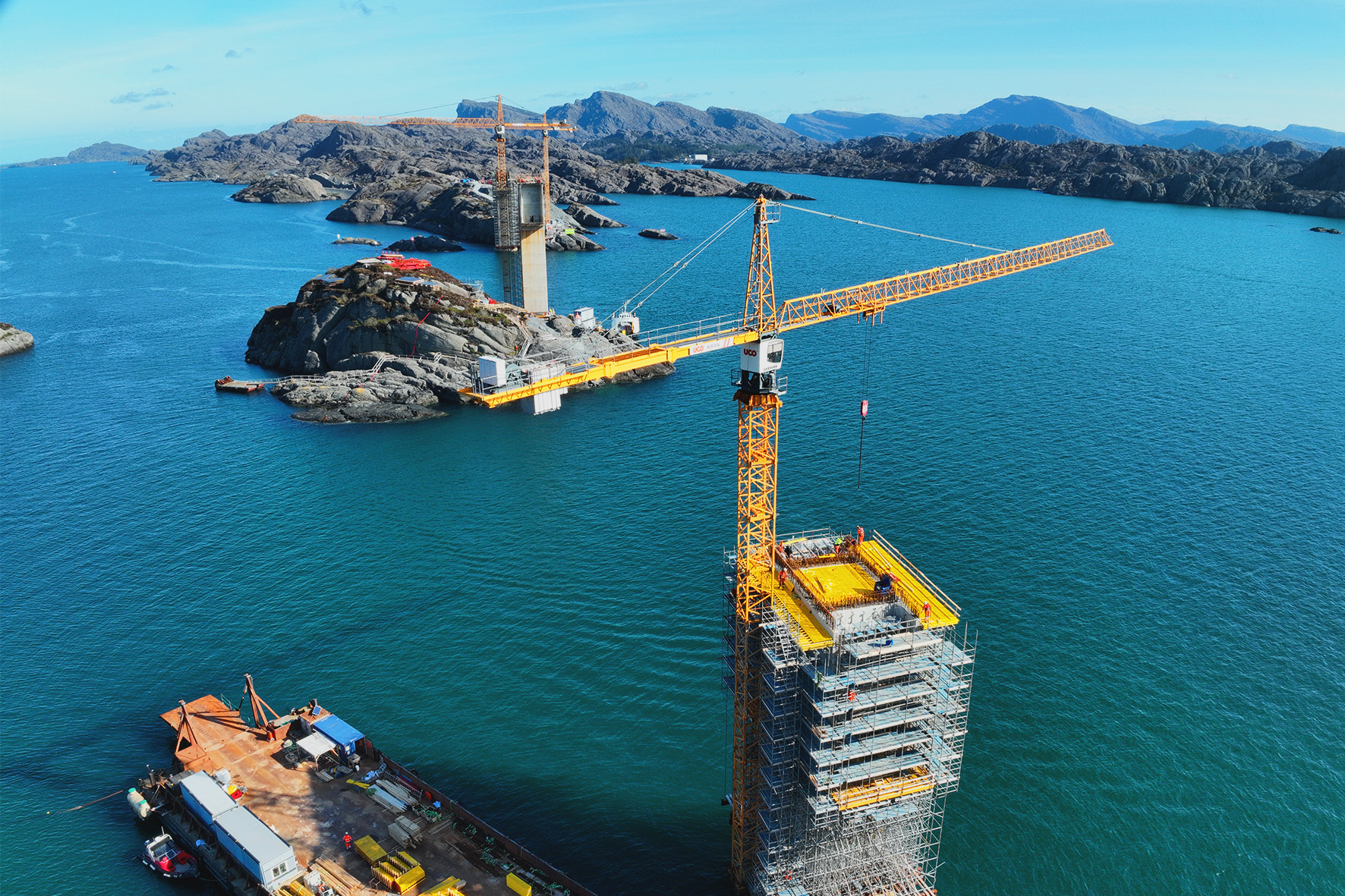 Quatre grues Liebherr EC-H en service sur un chantier d’infrastructure maritime exigeant Sur la côte…
